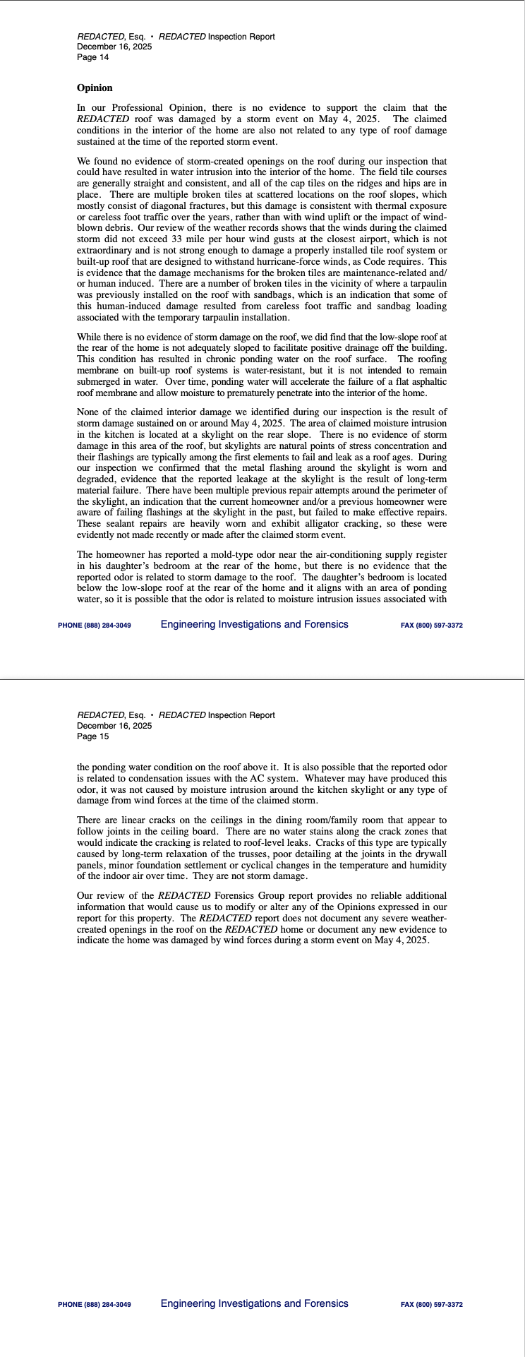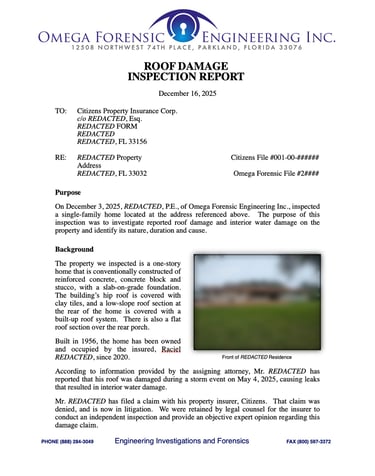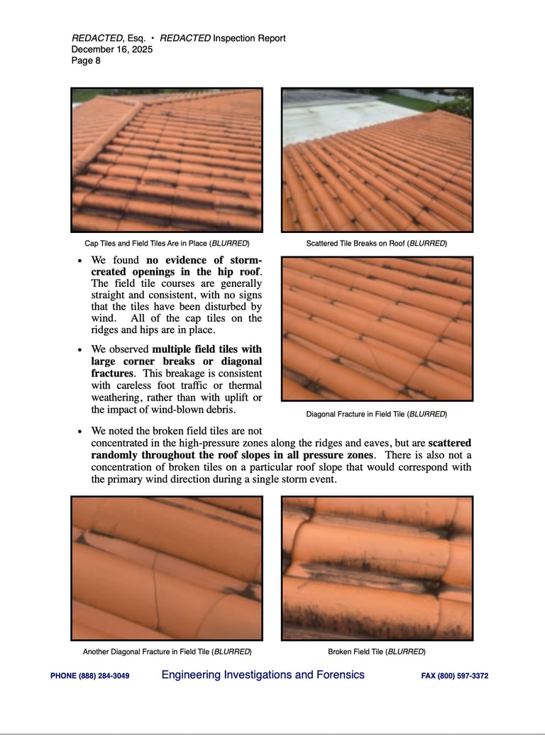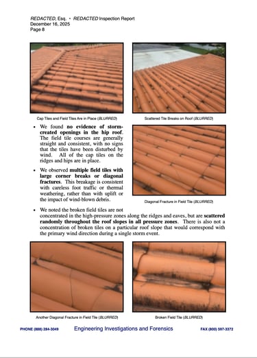 Our reports present complex issues in plain language, using a narrative format that moves logically from background and observations, to research and defensible engineering Opinions. Whether you're a desk adjuster or an attorney, our reports will stand out for their clarity and fidelity.